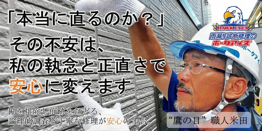 創業2005年,東京福生,雨漏りの原因調査から修理工事まで雨漏り診断士米田が一貫施工