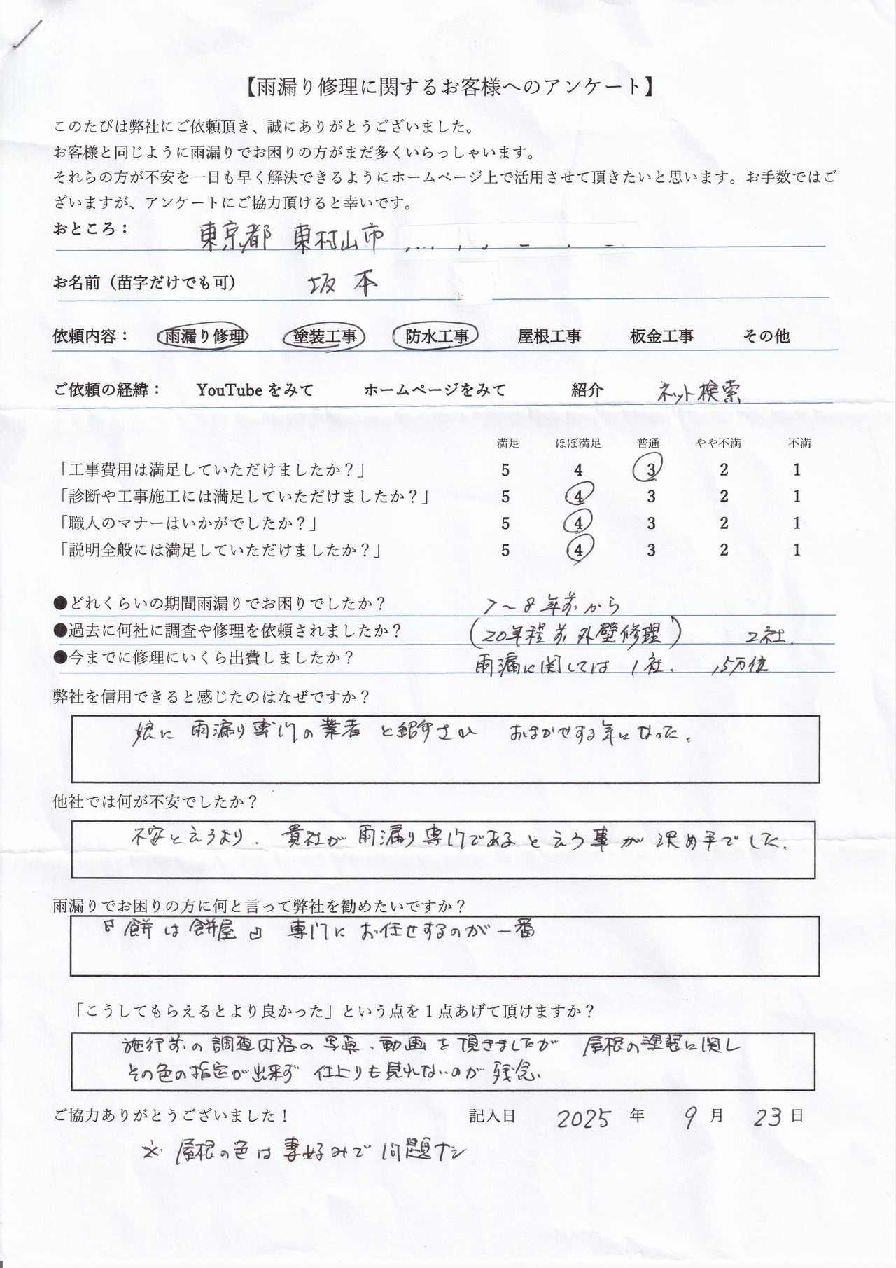 不安とういより、貴社が雨漏り専門であるということが決め手でした